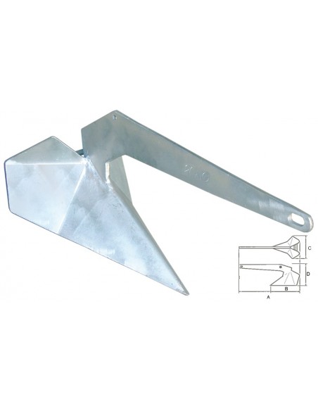 Tipo de fundo marinho: qualquer, graças à grande estabilidade e poder de aderência que permite à âncora uma aderência rápida e imediata.