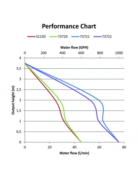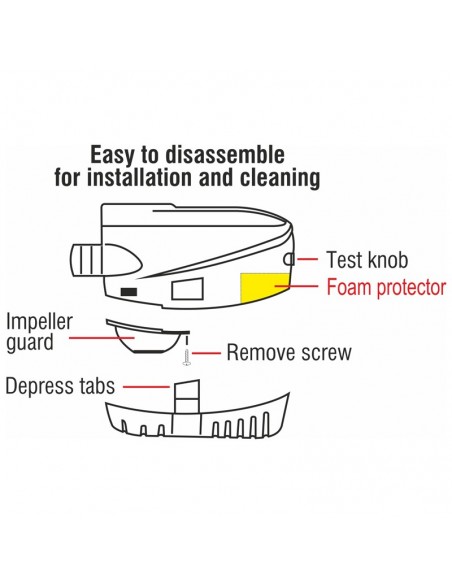 Possui uma base de filtro de encaixe, simplificando a instalação e a manutenção. É feito de ASA durável. A capacidade de bombeamento é de 600 GPH através de uma mangueira de 19 mm (3/4”) e 1000 GPH através de uma mangueira de 25 mm (1”). Fusível 3A, 4A e 7,5A. 12V e 24V CC.
