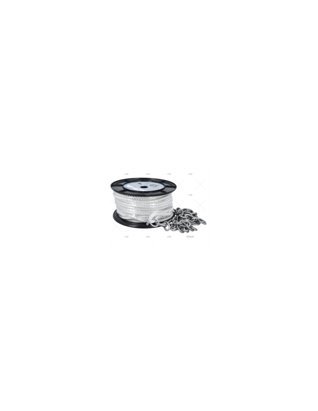 Cabo de âncora de nylon com corrente galvanizada, sapatilho de plástico e uma manilha galvanizada.