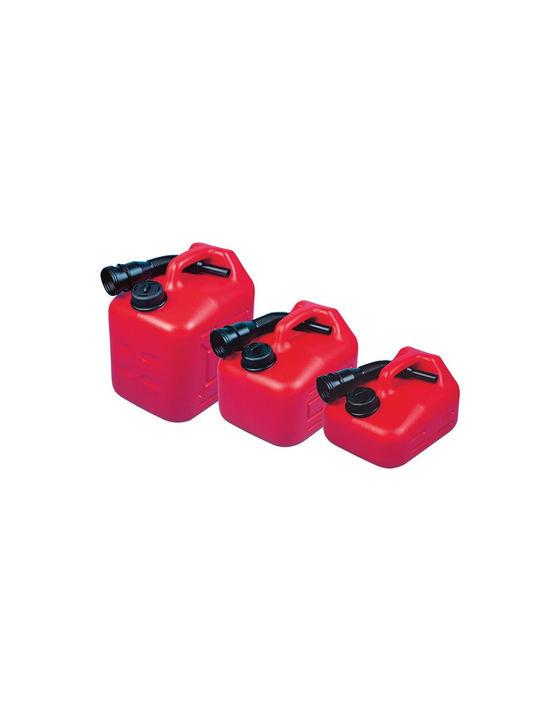 A linha JERRYCAN de tanques de combustível portáteis para motores de popa com bico é projetada em material de polietileno de alta densidade sem odor na cor vermelha. O material polietileno é utilizado para evitar ferrugem e tem vida útil mais longa, ao contrário dos tanques metálicos. Possui uma alça superior que o torna muito estável em uso e fácil de segurar e transportar, se necessário. Seu fundo especialmente projetado em grandes dimensões proporciona melhor estabilidade quando colocado. Contém tampa ventilada com lacre.