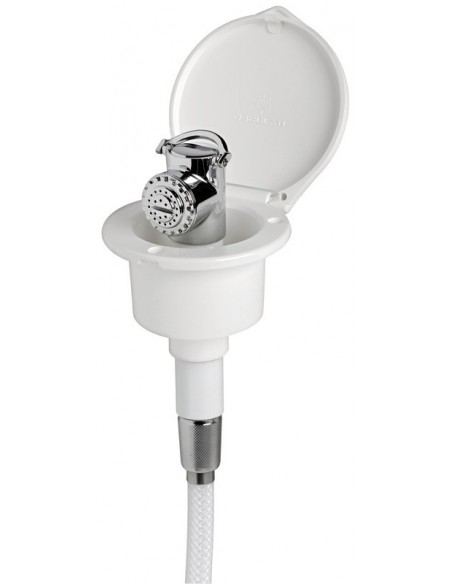 Elegante caixa de chuveiro com acabamento branco. Mangueira de PVC 2,5 m Montagem plana