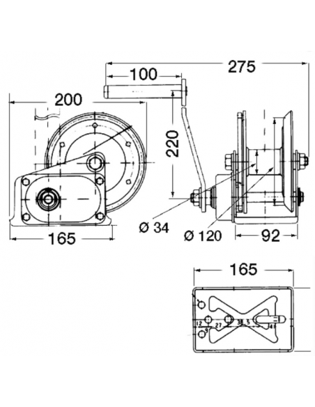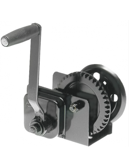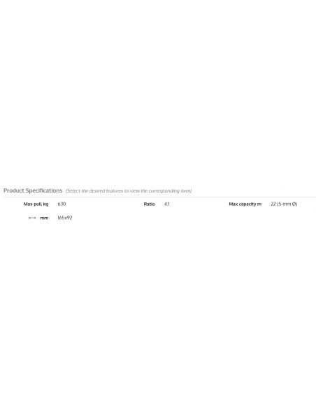 Corpo em aço zincado cromado, pinhões em aço temperado de alta resistência, casquilhos autolubrificantes, cabos reforçados, molas em aço inoxidável, engrenagens carenadas. Versão Guincho com travão e embraiagem automática; sem a lingueta, o tambor fica parado e liberta a pega. Certificação CE pela TÜV.