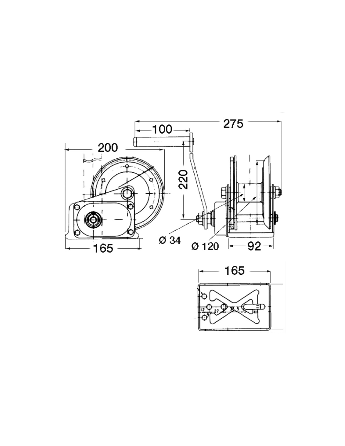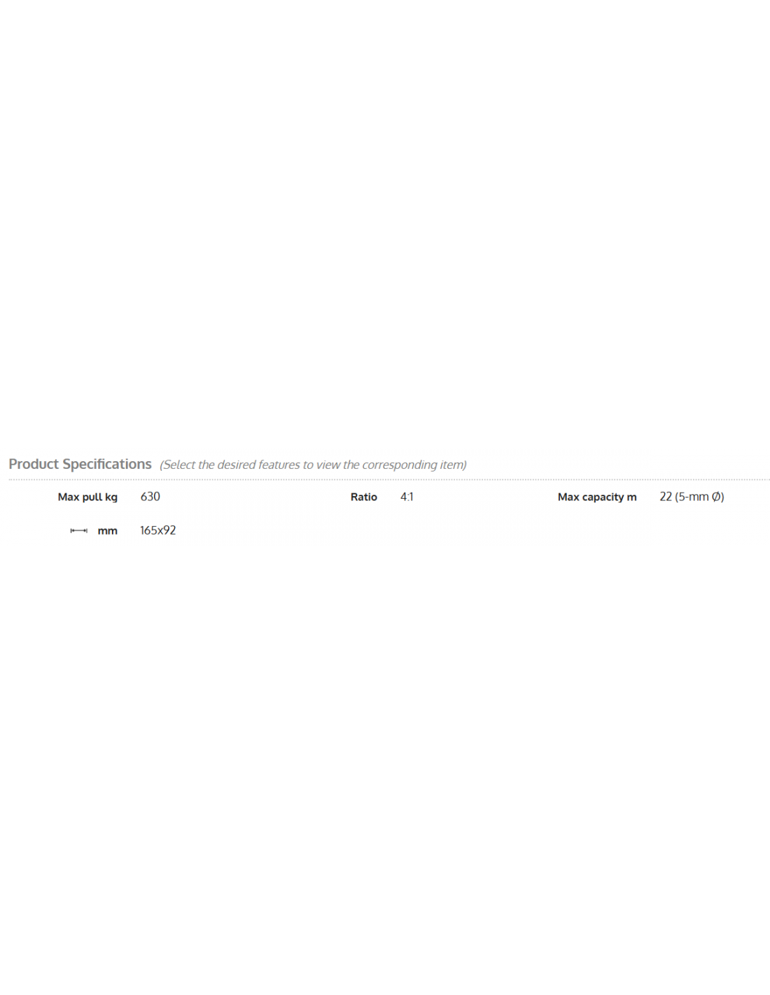 A carga máxima de tração refere-se à utilização com apenas uma volta de cabo no tambor.