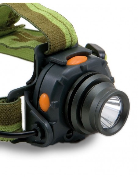 Interruptor de acionamento e mudança de modalidade esta lanterna tem 3 níveis de intensidade: alta, media e baixa. Tem também disponível a opção de ligar/desligar com o Sensor. Inclinável até 180º e possui 110 Lumens. Alimentação a Bateria 3xAAA (não incluídas).
