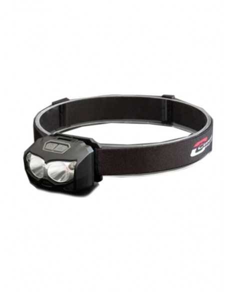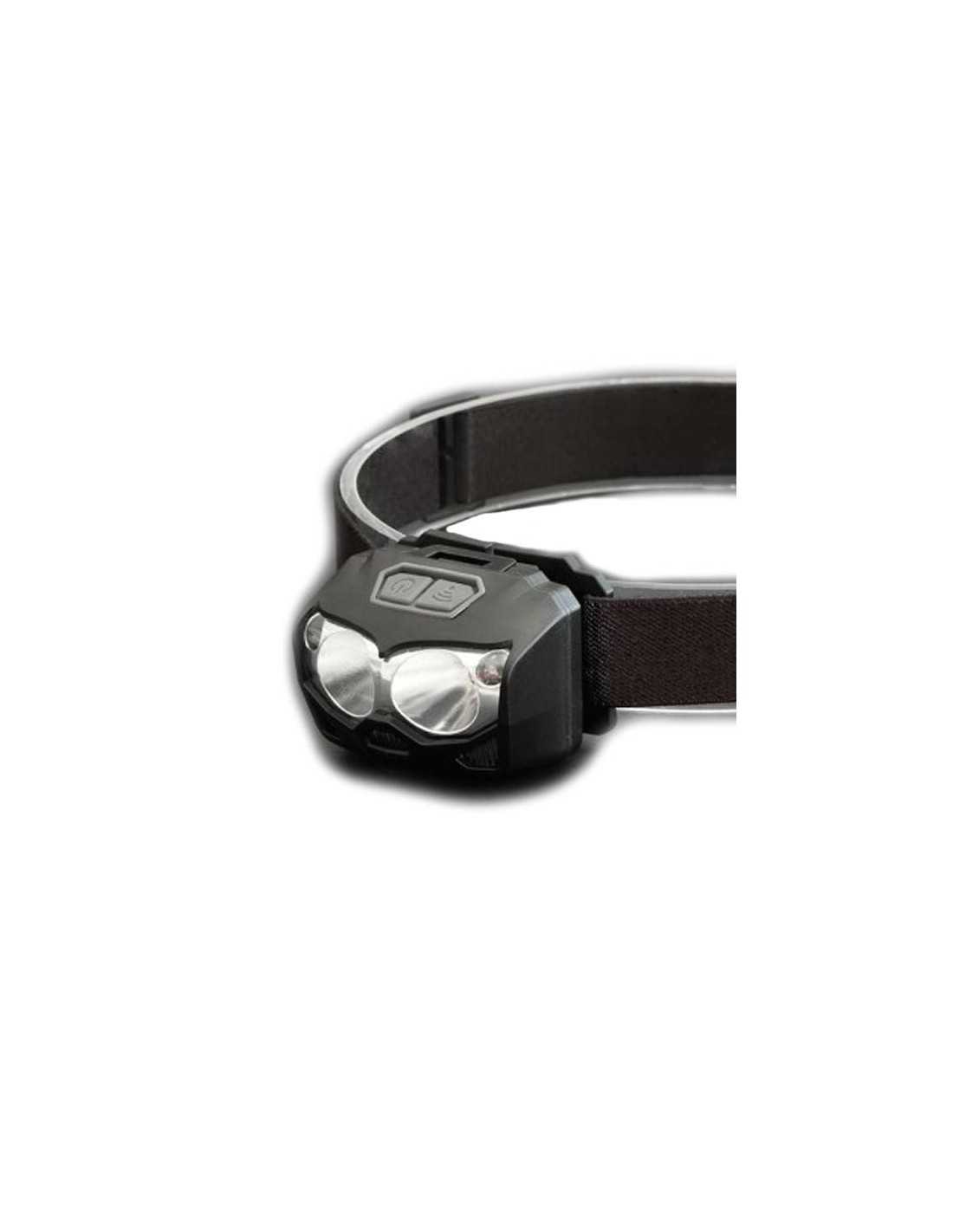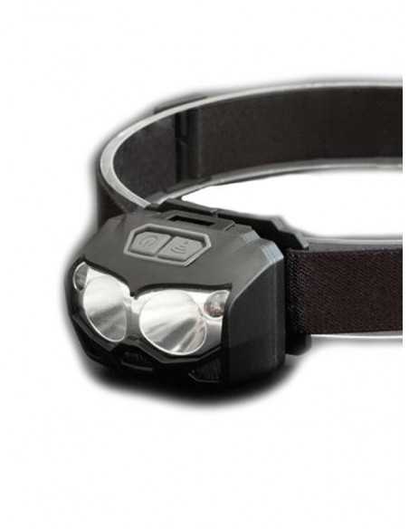 Lanterna de cabeça híbrida recarregável de 10 W com sensor de movimento. 2 LED brancos de 5w + 3 LED vermelhos. 500 lúmens Autonomia: Somente com bateria de lítio, 10 horas em baixa intensidade e 3h na intensidade máxima.