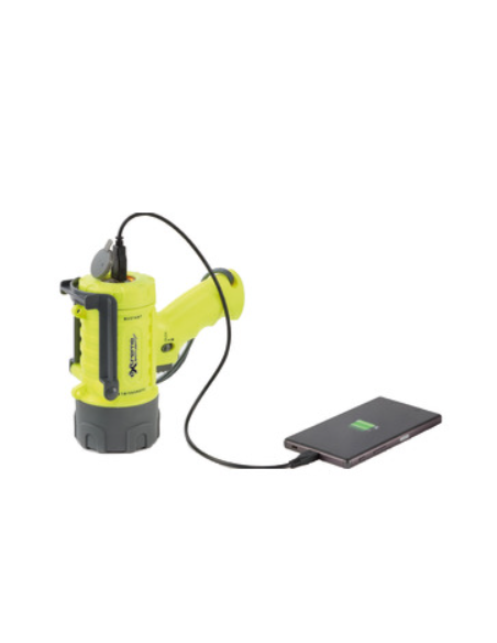 - pequena porta USB para recarga e grande porta USB para utilizar a lanterna como fonte de energia para telemóveis;