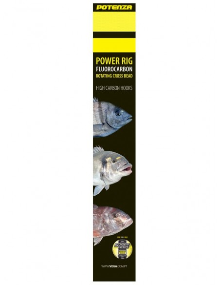 As montagens Vega Power Rig Fluorocarbon são montagens de 3 anzóis Chinu empatados com linha 100% Fluorocarbono. Possuem um crossbead transparente. O anzol de cima e o do meio têm um empate com 35cm e o debaixo com 40cm.