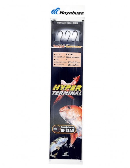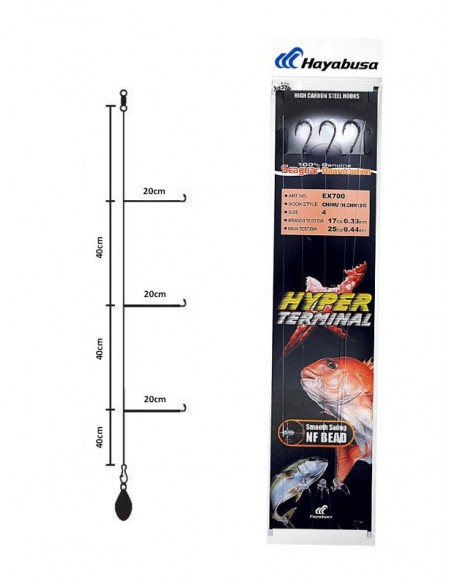 Montagem confeccionada com fluorcarbono SEAGUAR e anzóis premium Hayabusa Chinu (H.CHN121).