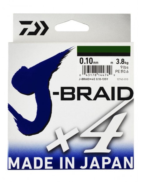O célebre multifilamento entrançado japonês J-Braid está disponível na versão 4 fios. A sua estrutura em 4 fios concebida no Japão oferece-lhe uma muito boa resistência aos nós e à abrasão. É caracterizado por um perfil redondo e uma rigidez bem doseada oferecendo uma melhor sensibilidade e uma muito baixa resistência à corrente. A sua relação qualidade / preço está à altura da família J-Braid: imbatível! Disponível na cor verde.