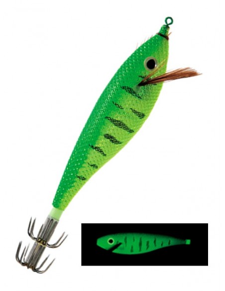 Yo-Zuri Ultra Dx, uma toneira envolvida num pano rugoso para uma sensação mais realista, mais delicada, leva os cefalópodes a atacarem por mais tempo, para uma maior taxa de conexão, tem também pequenas barbatanas peitorais emplumadas, amarração de linha giratória e ganchos afiados. De origem Japonesa e corpo/olhos luminosos.