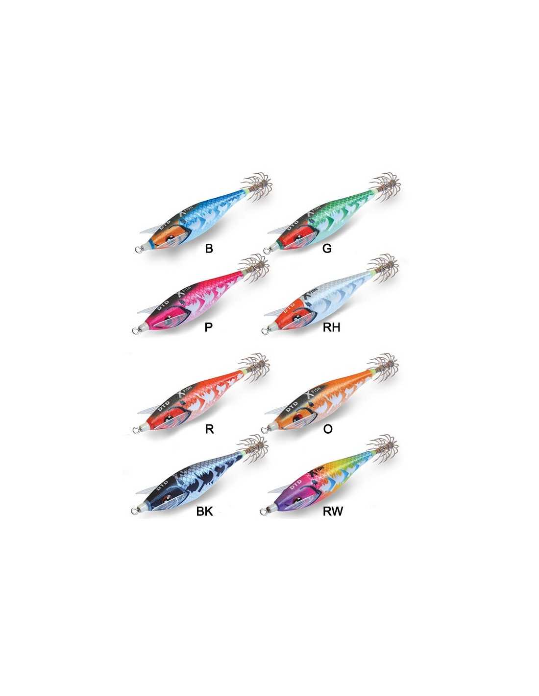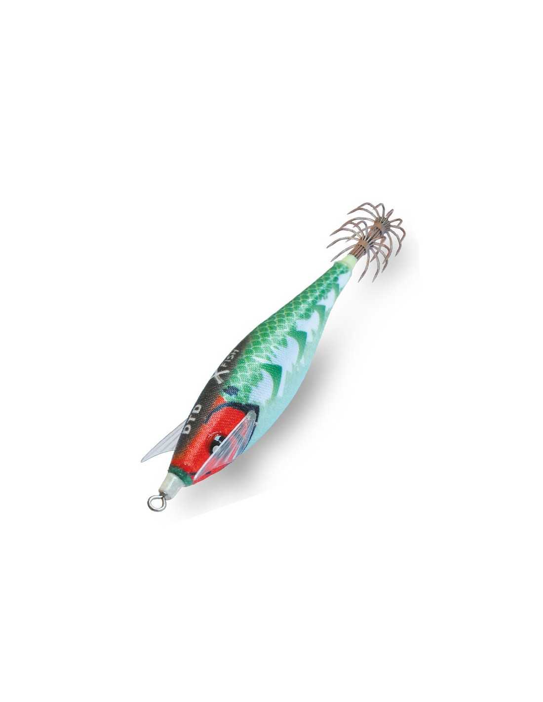 X fish é uma isca para os cefalópodes com um design marcante e um forte padrão lateral branco. Este padrão tem um efeito de brilho mais forte do que o resto do corpo. As cores também são reativas aos raios UV. O comportamento das barbatanas de silicone no mar é muito semelhante ao comportamento das barbatanas reais dos peixes.
