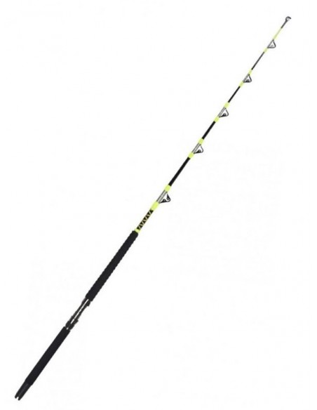 A cana Tubertini Spark 1K é uma cana inteira e está equipada com passadores de rodízio. Tem uma ação de 50-80lbs.