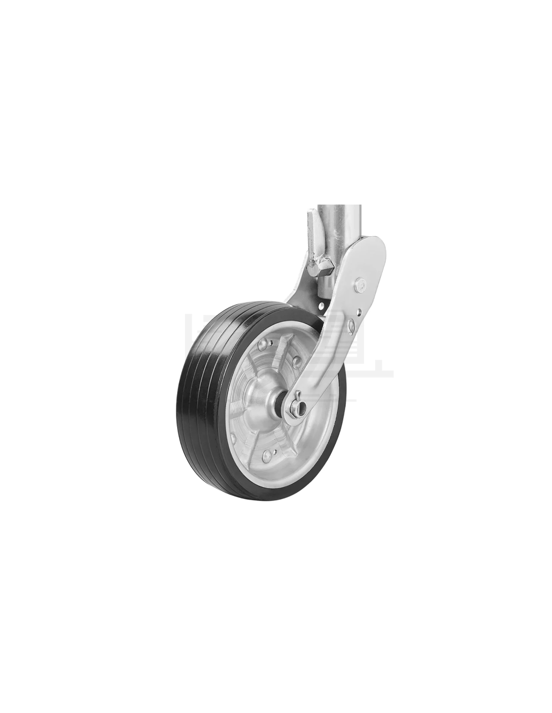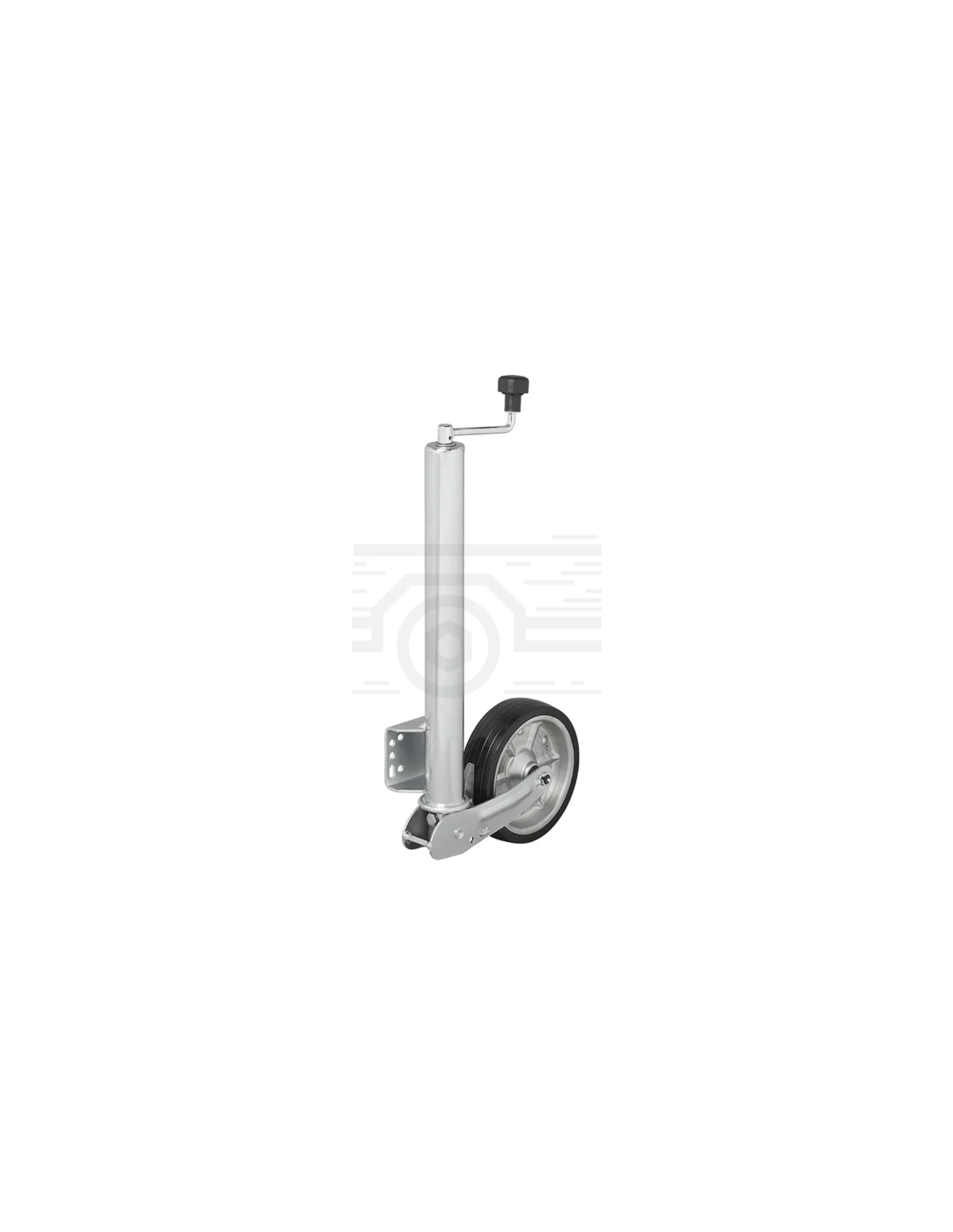 Não são necessários grampos, a base é montada diretamente na barra de tração do reboque e a roda dianteira pode ser baixada ou levantada através da alavanca. Equipado com um botão de lubrificação para uma longa vida útil. Roda dianteira automática para reboque.