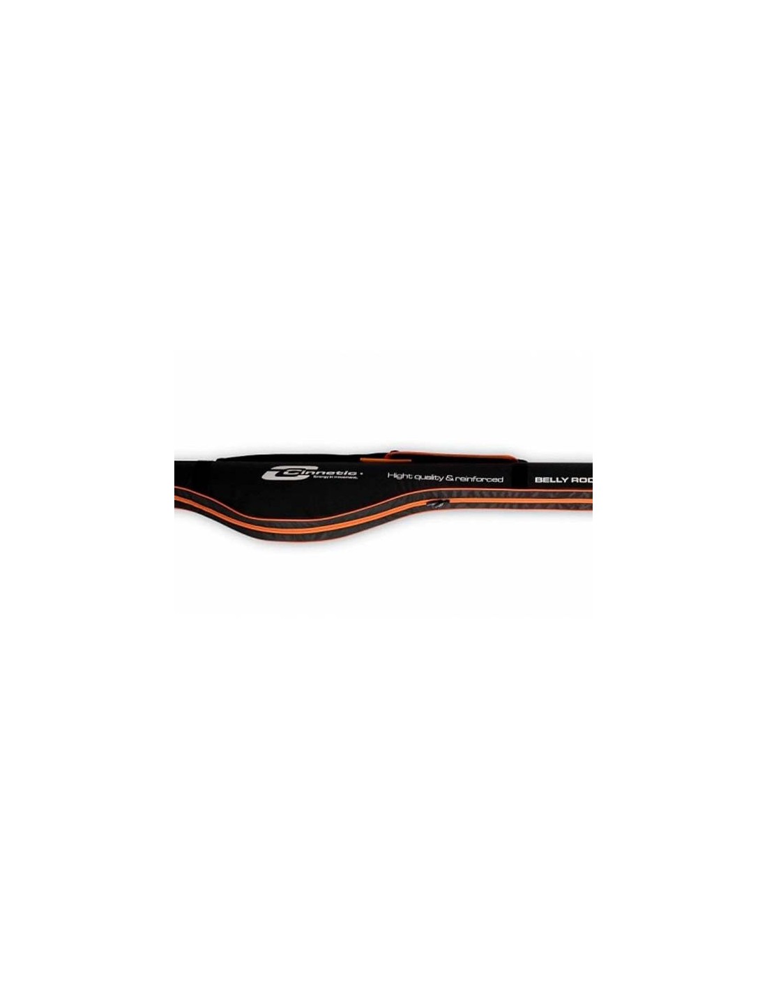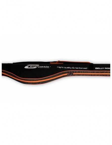 Medindo 155 x 9 x 21 cm, a Belly Rod Holdall pode carregar uma cana montada com o carreto. O modelo é feito de material 420 e 600 Denier Oxford e com zíperes de alta qualidade e alças de borracha personalizadas com o logotipo da marca Cinnetic. A parte inferior é finalizada com uma robusta base de plástico que a protege da humidade.