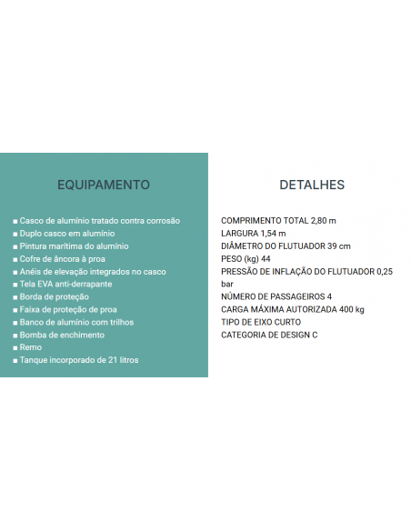 Este anexo semi-rígido em alumínio está disponível em VALMEX termo-soldado da empresa alemã Melher ou em tecido Hypalon, a preferir em zonas de calor intenso.