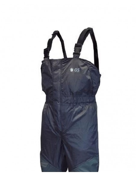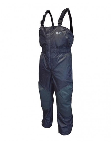 Macacão com suspensórios. 100% impermeável feito de PVC e Poliéster com 600g de algodão. Extra resistente ao frio e ao mofo. Zíper frontal e carcela 10 YKK Derlin Zíper em duas direções. Costuras seladas, assento e joelhos reforçados. Forro interno com segurança autodrenante. cumpre a norma EN 343