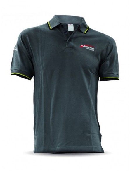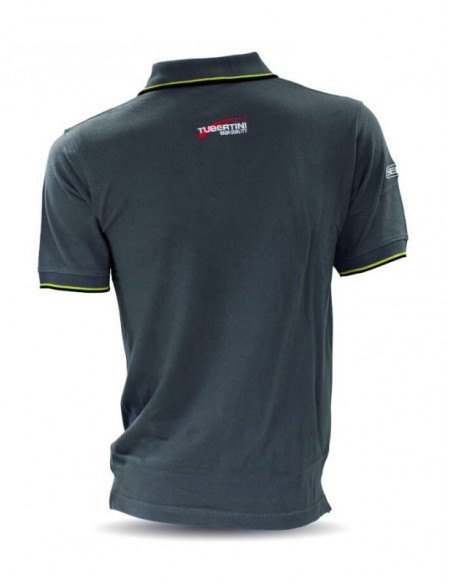 Polo desportivo, com bordados Tubertini e com punhos e gola em tecido listrado.