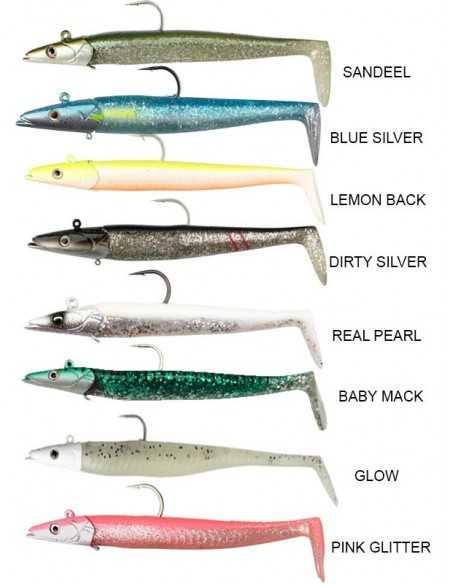 Os Sandeel são uma isca impressionante e única, são o petisco favorito de muitos predadores. De corpo mole têm uma ação de natação mais realista. Projetada principalmente para pesca vertical mas também provou ser mortal como isca de natação e até mesmo para corrico. Embalagens compostas por 2 corpos e um cabeçote.