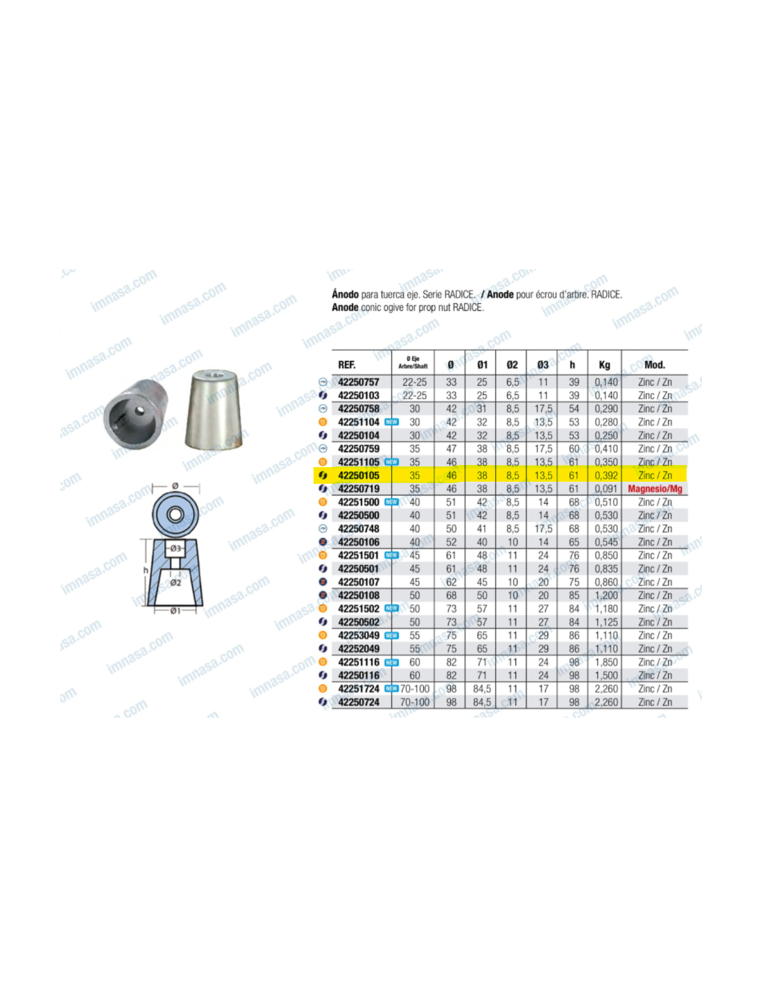 Zinco eixo 35mm