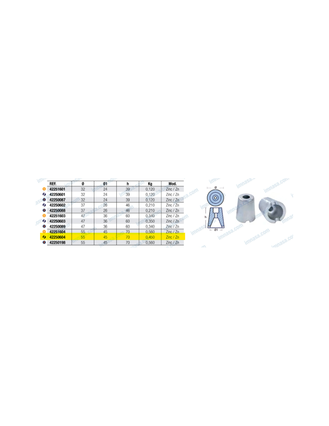 Zinco eixo 45mm